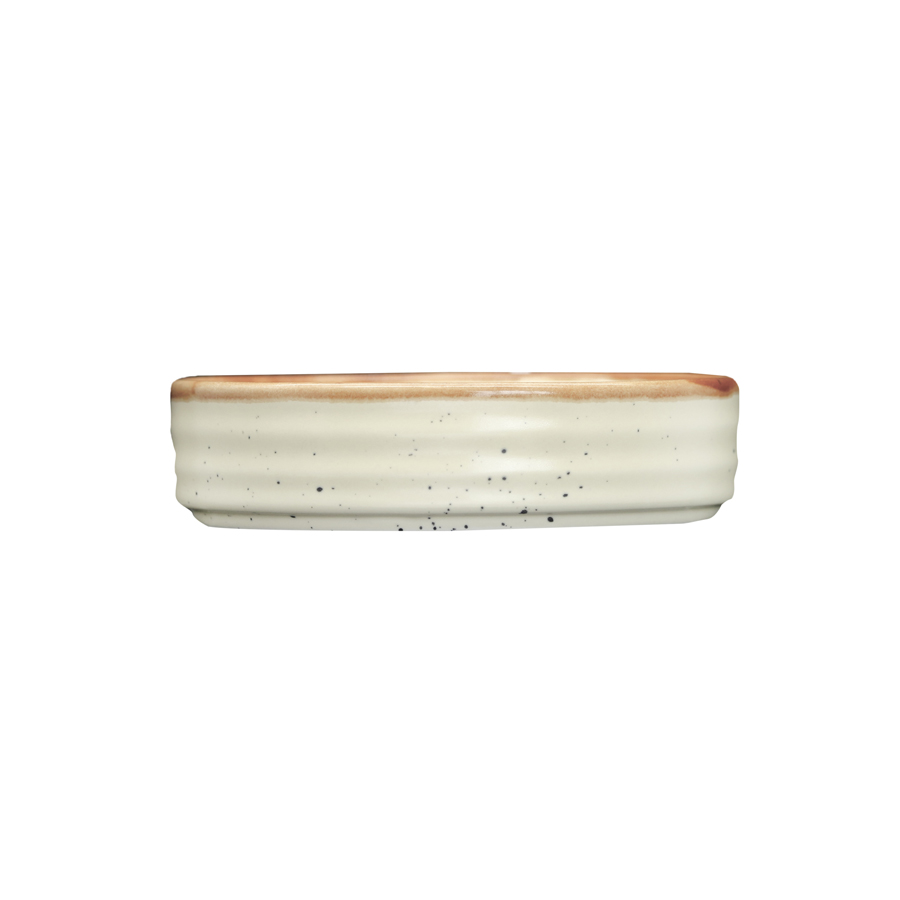 The Artisan Coast 12cm Stacking Tapas bowl with a warm cream glaze subtle speckle and hand applied edge ban is the ideal background for stunning presentation. The semi matt finish and subtle hand thrown rings both inside and out add to the Scandi natural style. This 12cm bowl is perfect for those sharing dishes and sides.