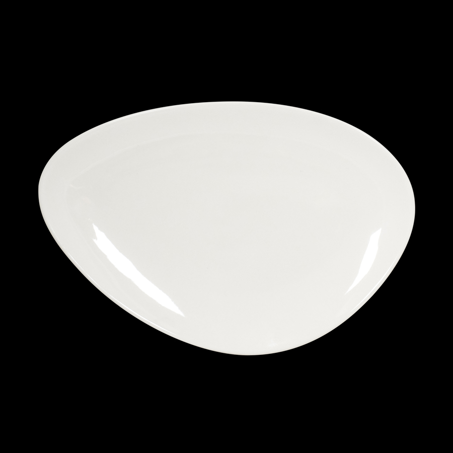 The Artisan Crème 21cm Island plate finished with the Crème clear gloss glaze and revealing the immaculate Crème Ivory body colour is the ideal background for stunning presentation. The organic triangle shape with soft sloping sides adds a new dimension to the table setting creating the perfect piece for showcasing your premium menu
