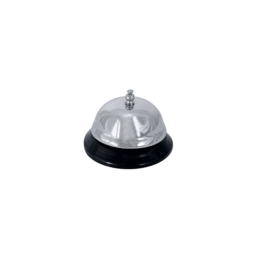 This chrome plated bell with black lacquered steel foot is ideal for use at the reception desk in hotels
