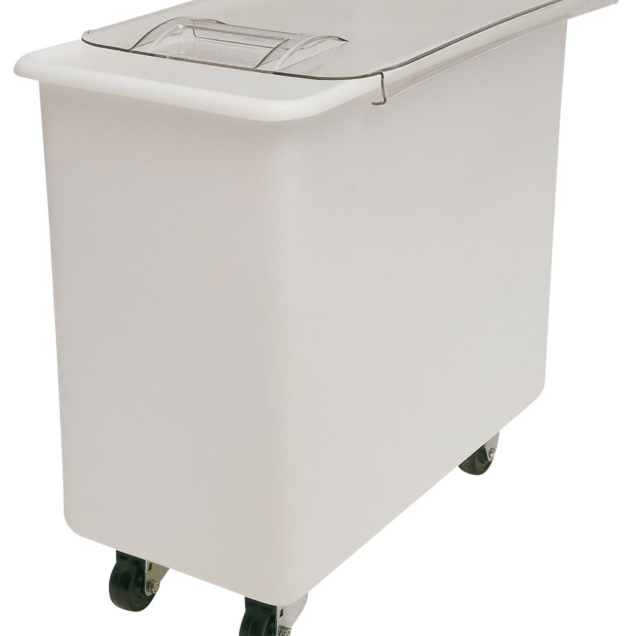 o Polycarbonate slide-back transparent lid for easy checking of contents o S mooth interior surfaces for easy cleaning o N o bacteria traps, impervious to moisture o 7.6cm diameter castors allow for bins to be easily stored under work counters .