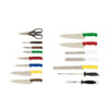 The GenWare professional chef knife collection consists of a wide choice of knives and accessories available through both GenWare and the German Knife manufacturer, Giesser. GenWare black-handled and colour coded range of professional chef knives offer a full tang blade, with razor sharp molybdenum steel blade, which conforms to BS8442-5, giving initial sharpness and cutting edge retention. Larger knives have soft grip handles which give comfortable and positive handling. Knife sets offer a pre-selected range of knives, ideal for chef colleges, students and professional chefs. Knife cases are designed to carry knives and knife sets safely, offering protection from damage and injury. Our Knife Sharpener is a great alternative to a traditional sharpening steel and features a two stage process designed to rejuvenate blunt knives with a razor sharp blade. Giesser knives, designed and manufactured in Germany, provide an industry leading combination of initial sharpness, cutting edge retention and value for money.