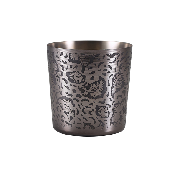 GenWare Serving Cups are great for serving appetisers and sides such as fries and onion rings. It provides the perfect Gastro-pub look and can be used alone or with greaseproof paper. GenWare Black Floral Stainless Steel Serving Cup hosts an intricate etched floral design, great for adding an elegant touch to any dish.