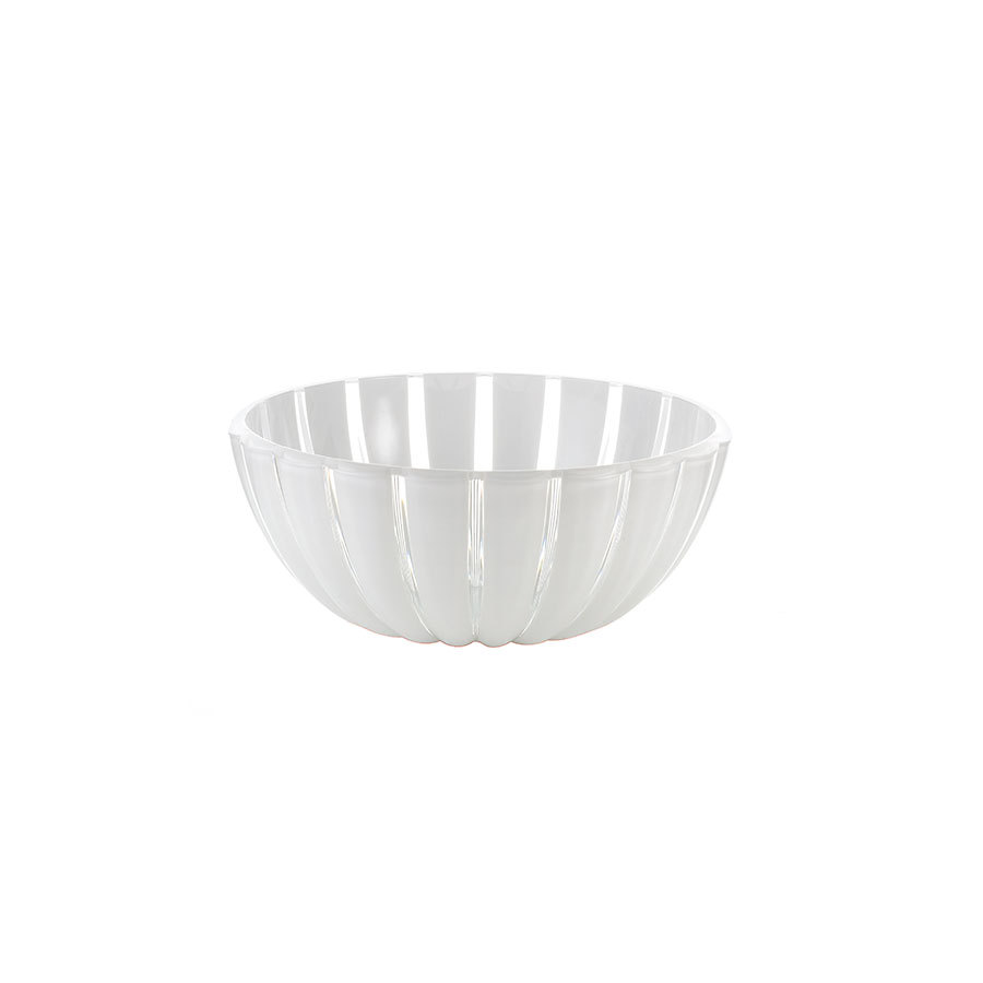 Guzzini, together with Pio and Tito Toso, venetian designers, created Grace; a collection of extremely precious, unique and inimitable objects, like Murano glass itself. A series of coloured and transparent slices of different thickness shape the objects of this collection designed by Pio&Tito Toso. The flow of glossy white material on the inside, of transparent colours and of pale blue and sand nuances on the outside generates unique three-colour effects. Dishwasher safe. Made in Italy.