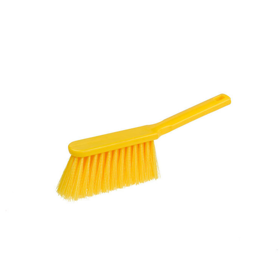 Soft yellow hand brush. Polyester fill on plastic stock. Ideal for light particles.